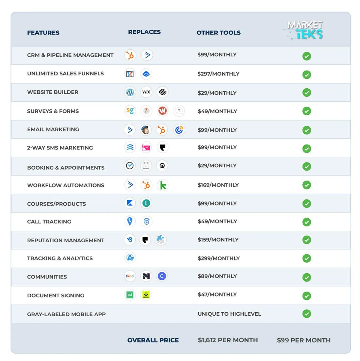 “Finally — a platform that actually replaces Pipedrive, Mailchimp, and ClickFunnels. Market Teks is worth it.”
